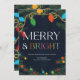 Send festive cheer with this "Merry & Bright" holiday card, adorned with vibrant Christmas lights and a lush green wreath. Perfect for sharing warm wishes with family and friends.
