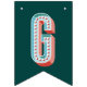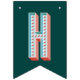 A festive bunting banner featuring the phrase "Merry + Bright" in handmade marquee-inspired lettering, and coordinating diagonal stripe pattern end panels. Add 2 photos for a personal touch. This banner would be the perfect addition to any Christmas or holiday party decor!