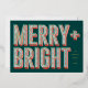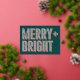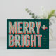 This festive Christmas card features the phrase "Merry + Bright" in a marquee light-inspired typographic design, enhanced with a foil overlay. The vibrant colour palette adds to the cheerful appeal, making this holiday card perfect for families with kids. The back of the card features a beloved family photo with a coordinating stripe pattern frame, or remove the photo and frame to reveal an all-over stripe pattern.