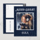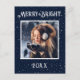 Merry & Bright typography. Navy blue background with white starlights design with your favourite photo in the centre. Personalise with your message and name on the reverse side. The perfect holiday greeting card.