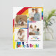 A colorful Merry & Bright Christmas holiday card featuring a modern photo collage, a rainbow to symbolise hope, cute colorful hearts, your name and year.