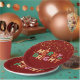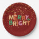 Add festive flair to your holiday gatherings with this vibrant "Merry & Bright" paper plate. Featuring bold multicolor lettering on a deep red background with sparkling gold confetti accents, this cheerful design is perfect for Christmas parties, family dinners, or office celebrations. Durable and disposable, it combines convenience with style for effortless entertaining.