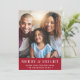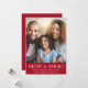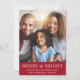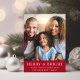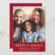 Modern red Christmas holiday card featuring your photo and "Merry & Bright" in stylish white typography. Personalise with your greeting and name in simple white typography.