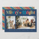 Merry & Bright Retro Colourful Two Photo Christmas Holiday Card
