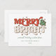 Festive Merry & Bright Retro Typography, holiday postcard.