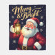 Merry Bright Santa Holding Lantern Illustration Fleece Blanket