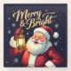 Merry Bright Santa Holding Lantern Illustration Glass Coaster