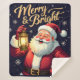 Merry Bright Santa Holding Lantern Illustration Sherpa Blanket