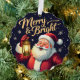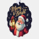 Merry Bright Santa Holding Lantern Illustration Tree Decoration Card