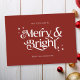 Merry & Bright Simple Christmas Holiday Card. This look is all about minimalism, featuring deep, rich reds inspired by the warmth of the season. Think of simple red berries, classic poinsettias, and a single crimson ribbon—each detail thoughtfully chosen to evoke a sense of festive elegance. A touch of soft white or gold adds a subtle contrast, enhancing the design’s understated charm without overpowering its simplicity. Perfect for those who love a clean, refined aesthetic, this theme captures the joyful essence of the holidays with grace and sophistication.