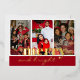 Merry Bright Three Photo Red and gold Foil Holiday Card