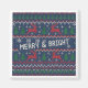 Embrace the cozy charm of the holidays with this playful ugly Christmas sweater design. Set against a deep navy blue background, bold red reindeer leap among vibrant green evergreen trees, all outlined in crisp white stitching. Delicate snowflakes and zigzag patterns enhance the winter wonderland vibe, while the cheerful, slightly distressed white font reads "MERRY & BRIGHT" at the center. Perfect for celebrating festive gatherings, cozy nights by the fire, or sharing warm holiday wishes, this design radiates cheerful, snug holiday spirit.