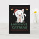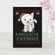 merry catmas- merry Christmas with a cat. A fun pun with cats and Christmas. An ugly christmas pattern for cat lovers. The cat wears fairy lights.