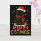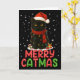 Merry Catmas Santa Hat Funny Black Cat Christmas W Card