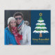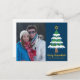 This cute Merry Chrismukkah family photo postcard features a green Christmas tree decorated with blue dreidel ornaments and a gold Jewish Star of David at the top for Hanukkah to combine the 2 holidays for a family that celebrates both.