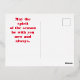 This Christmas holiday greeting postcard features a red background with white and gold foil text that reads: Merry Christ mas. "Christ" is printed in real gold foil while the other text is in white. The back of the postcard has red text that reads: "May the spirit of the season be with you now and always." Easily change or remove the message by clicking "Personalise this Template." A simple yet bold greeting that highlights the reason for the season.
