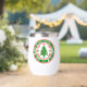Modern Bauhaus-style Christmas design featuring a bold geometric tree in festive red and green.