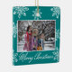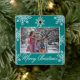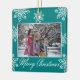 Merry Christmas 2 Photo Teal And White Snowflakes Ceramic Ornament