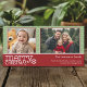 Customise this with 2 photos and your family name. Includes an option to add the first names of your family members or a personal holiday greeting! A fun, simple design in green and red.