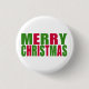 A bright green and red bold Merry Christmas design for the holidays on a stocking stuffer button.
