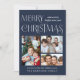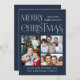 Merry Christmas 3 Photo Blue Holiday Card