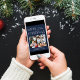 Elegant blue holiday greeting card featuring "Merry Christmas" in stylish vintage white typography, "happy new year" and a seasonal greeting in modern white typography, a photo collage of 3 of your favourite photos and your family name.