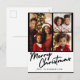 Merry Christmas typography personalised photo holiday postcard with area for 3 of your favourite photos. Add your message on reverse of this sweet postcard. The perfect greeting card for all your family and friends. 100% customer satisfaction every day at Zazzle.