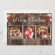 Merry Christmas 3 Photo Rustic Wood Holly Berries Card