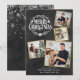 A boho 4 photo collage holiday design for you to personalise with your favourite photos framed in gold, message, names and year on a chalkboard background. The reverse features falling snowflakes on a matching chalkboard background. Designed by Thisisnotme©