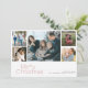 Simple minimalist red typography custom multi photo, family name, and text personalised elegant Christmas holiday card. +++++++++ Personalised it on both sides!
