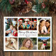Simple, modern photo collage holiday card featuring "Merry Christmas" in an elegant script, 6 pictures of your favourite people and moments from the last year and your family name and the year.