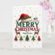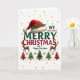 Picture this: a vibrant and eye-catching Christmas greeting card that instantly puts a smile on your face. 🎅🏼 The main design showcases a luxurious, fluffy Santa hat decked out with gorgeous holly, set against a backdrop of twinkling golden stars. The words "MERRY CHRISTMAS" pop in cheerful red and green hues, spreading holiday cheer at first glance. 🎄 Beneath the festive greeting, a row of whimsical Christmas trees in alternating red and green, accompanied by two stylish reindeer, add a touch of whimsy to the overall design. 🦌 This card is a perfect blend of traditional charm and modern flair, making it the ideal choice for spreading warmth and joy this holiday season. 🎁