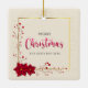 Merry Christmas and Happy New Year with Gold Frame and Poinsettias