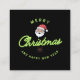 This image displays a "Merry Christmas and Happy New Year" greeting card with a striking and contrasting design. The deep black background highlights the word "Christmas," which is written large and bold in a bright, neon lime-green cursive style, accompanied by an illustration of a smiling Santa Claus head at the top. The overall design has a modern and festive feel, with essential red and green color accents for the celebration.
