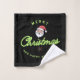 This image displays a "Merry Christmas and Happy New Year" greeting card with a striking and contrasting design. The deep black background highlights the word "Christmas," which is written large and bold in a bright, neon lime-green cursive style, accompanied by an illustration of a smiling Santa Claus head at the top. The overall design has a modern and festive feel, with essential red and green color accents for the celebration.