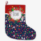 Large Christmas Stocking (Personalised) - 20XX Merry Christmas and Happy New Year! XMAS Large Christmas Stocking decorated with Christmas magic symbols, Winter Holiday gifts elements pattern, snowman, christmas tree, christmas ball, reindeer, snowflakes, christmas stars, and more festive characters. Original trendy graphic design. Home, Home Décor, Christmas Décor, Stockings Gifts Presents Winter Holiday Decoration. Large Christmas Stocking Design with text template. Personalise them by adding name. Two sides graphic decoration.