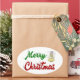Stickers with Merry Christmas in 3D green and red text and an angel. Stickers are available in several shapes.