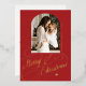 Elegant luxury Merry Christmas gold classic calligraphy script real foil family photo red holiday card with your custom personalised text. +++++++++ PLEASE NOTE that the background colour is editable. You can change it after selecting CUSTOMIZE option down below the PERSONALIZE IT menu. If you don't feel at ease changing it, please ask Zazzle Live Design Service or the designer for help. The foil colour is also changeable - you can choose gold, silver, or rose gold.