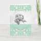 Merry Christmas Banner, White Art Nouveau Decorative Floral Flourishes on Mint Green Background, Christmas / Holiday Photo Card.