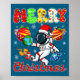Merry Christmas Astronaut Santa Hat Snowflakes Tre Poster