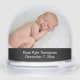 This is a fun and festive snow globe that is easy to customise with your own photos, name and birthdate. One side of the snow globe is accented with your special photo and Merry Christmas with decorative silvery ornaments on a black background; while the other side is decorated with the same photo or different photo, and the baby's name and birthdate, (or your own special message if preferred). This makes a wonderful gift for the holidays, or the start of a new family tradition. If help is needed customising this item, just contact us at prettyfancyinvites@gmail.com.
