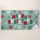 Merry Christmas colourful text design with snowflakes decoration on green background