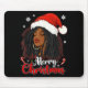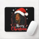 Merry Christmas Black African Girl Santa Hat Xmas Mouse Mat