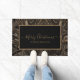 Merry Christmas black and gold swirl family name Doormat
