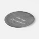 Merry Christmas Black White Chalkboard Typography Paper Plate