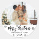 Merry Christmas Black White Snowflake Family Photo Classic Round Sticker