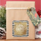 Merry Christmas in chic white lettering on a splash of faux gold foil, these square stickers feature a background of modern black and white stripes and gold dots and are personalised with your name. MORE designs in our collection.