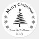 elegant Christmas themed sticker featuring a black and white tree and snowflakes , personalised sticker.