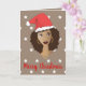 Merry Christmas! Black Woman Santa Hat White Stars Card
