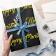 Merry Christmas Black Yellow Festive Script Wrapping Paper